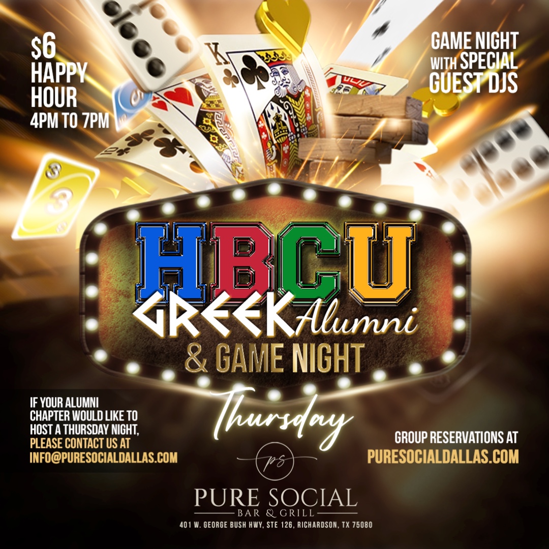 HBCU/GREEK ALUMNI & GAME NIGHT THURSDAYS